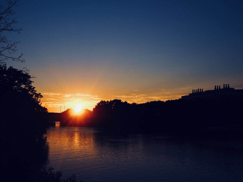 我们所住的波士顿大学宿舍的湖边拍的日落特别美,特别想坐在河边望着夕阳,河对面是哈佛大学,旁边是哈佛大学商学院。
