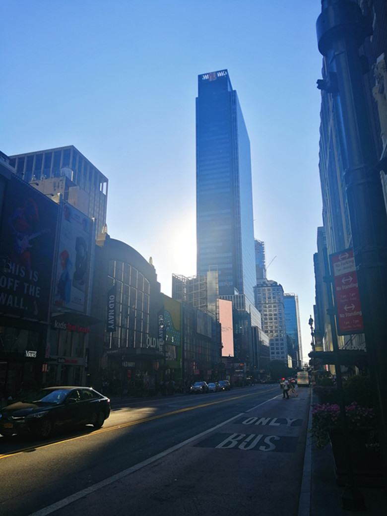 我们到达纽约的第一天傍晚,自由活动时间,我们去了Macy’s百货,有些身心俱疲的我一出门看到6、7点的阳光照射在街道的一处,正好形成黄金分割点,毫不犹豫拿起相机拍了下来。