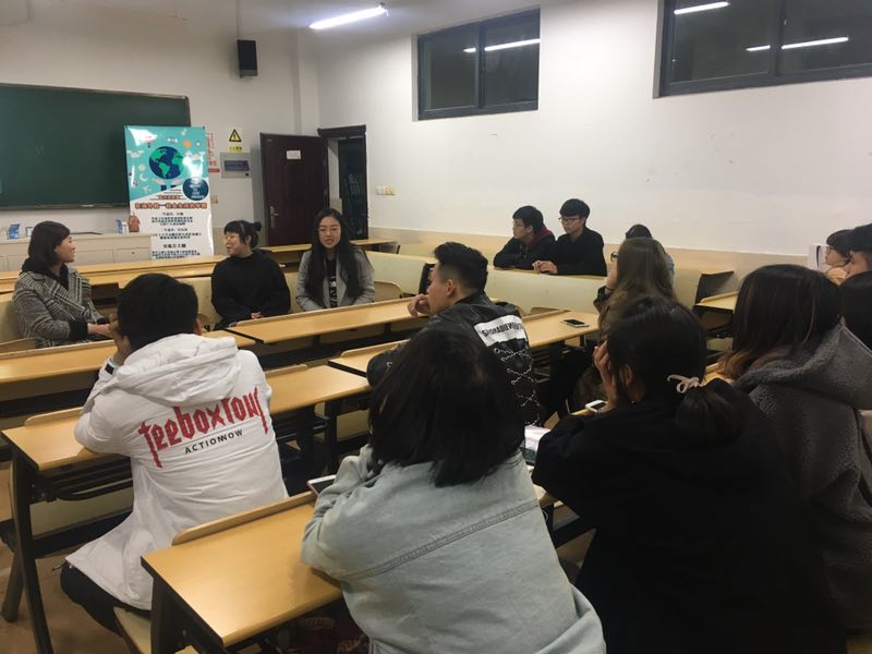 11月23日晚,学院第一届国际文化月第四场活动“在海外做一枚会生活的学霸”于教学楼6幢110教室举行。本次交流会邀请到了吴迪和吴昊青两位海归嘉宾,由外事办傅筠茹老师主持。