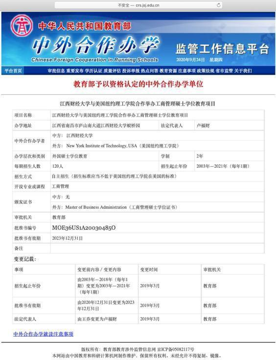 NYIT-江西财经大学中外合作办学项目 MBA 硕士学位