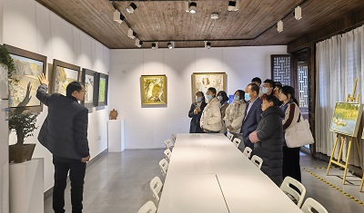 12月3日下午,学院第四届国际交流文化月彩蛋活动——欣赏以“传承与融合”为主题的中国留学乌克兰艺术家油画作品展在义乌容象美术馆举行。本次活动特邀请浙江师范大学美术学院油画专业教师、乌克兰国立美术学院硕士、上海大学上海美术学院博士董泉老师为大家作现场讲解。